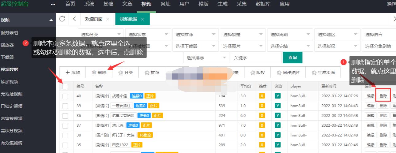 3、删除某个资源站数据,一般每个资源站都有独立的播放标识,如若要删除某个资源站的数据,则删除对应的播放组即可