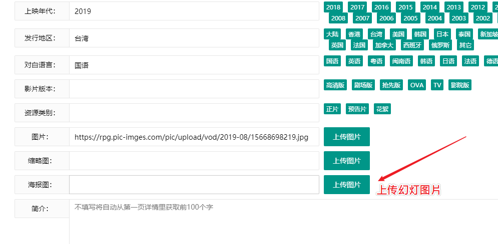 苹果cms设置幻灯轮播图片教程(图文) 作者: 无 • 更新时间:2025-11-18 •阅读 1、进入后台,找到你想设置的视频数据 2、设置推荐数,具体推荐几要看模板的调用写的是几,一般为5或是9 3、然后上传海报 本文采摘于网络,不代表本站立场,转载联系作者并注明出处:https://www.jsjds.com//pgjc/239.html