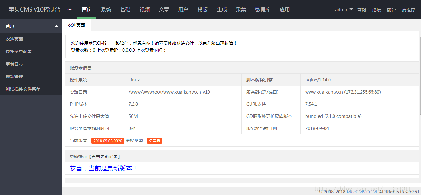 1、到苹果CMS官网上下载最新版的CMS,我下载的是V10版本。http://www.maccms.com/down.html