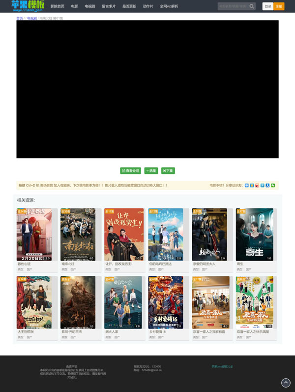 经典黑色影视网站风格,与传统最大区别在于,摒弃了左右栏设计,而是通栏居中,最大化将用户聚焦在主体内容上,避免了分散关注度。与网络流传版本相比,升级如下:
