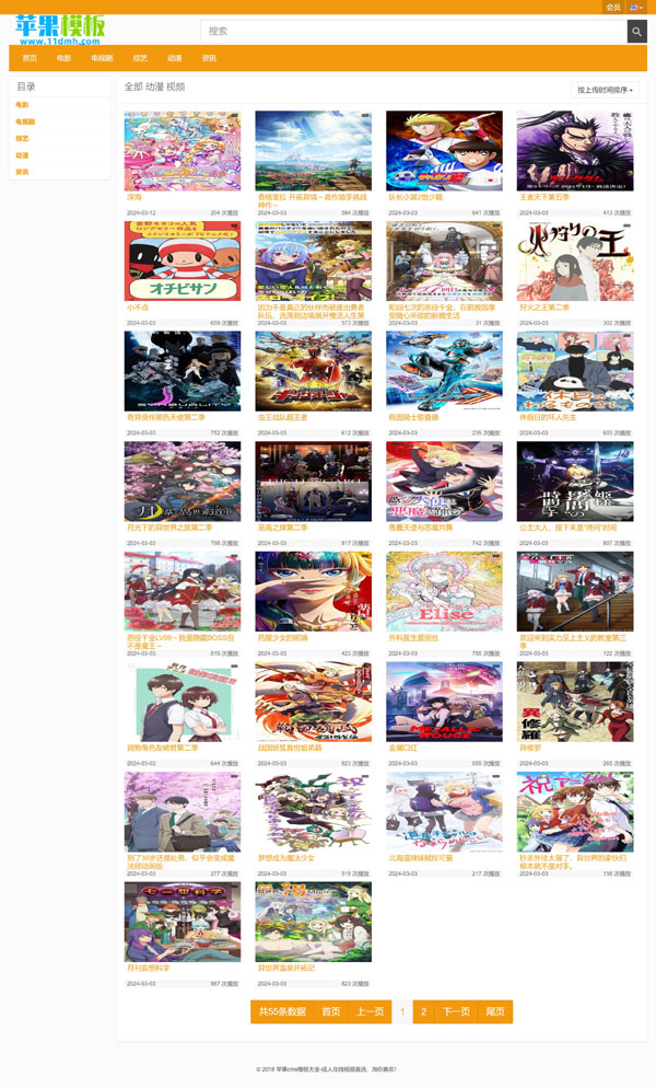 黄色极简风电影站/x站自适应模板2号下载 -苹果cms10模板免费下载