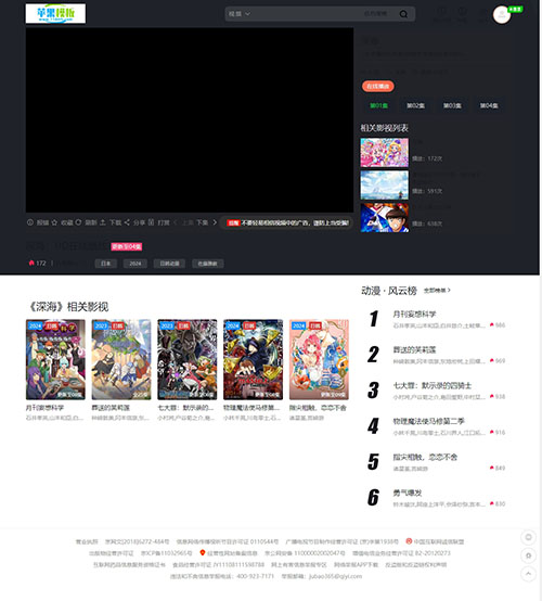 这是一款带“主题管理系统”的模板,非纯苹果cms模板文件,小白慎用,建议有一定经验人使用。