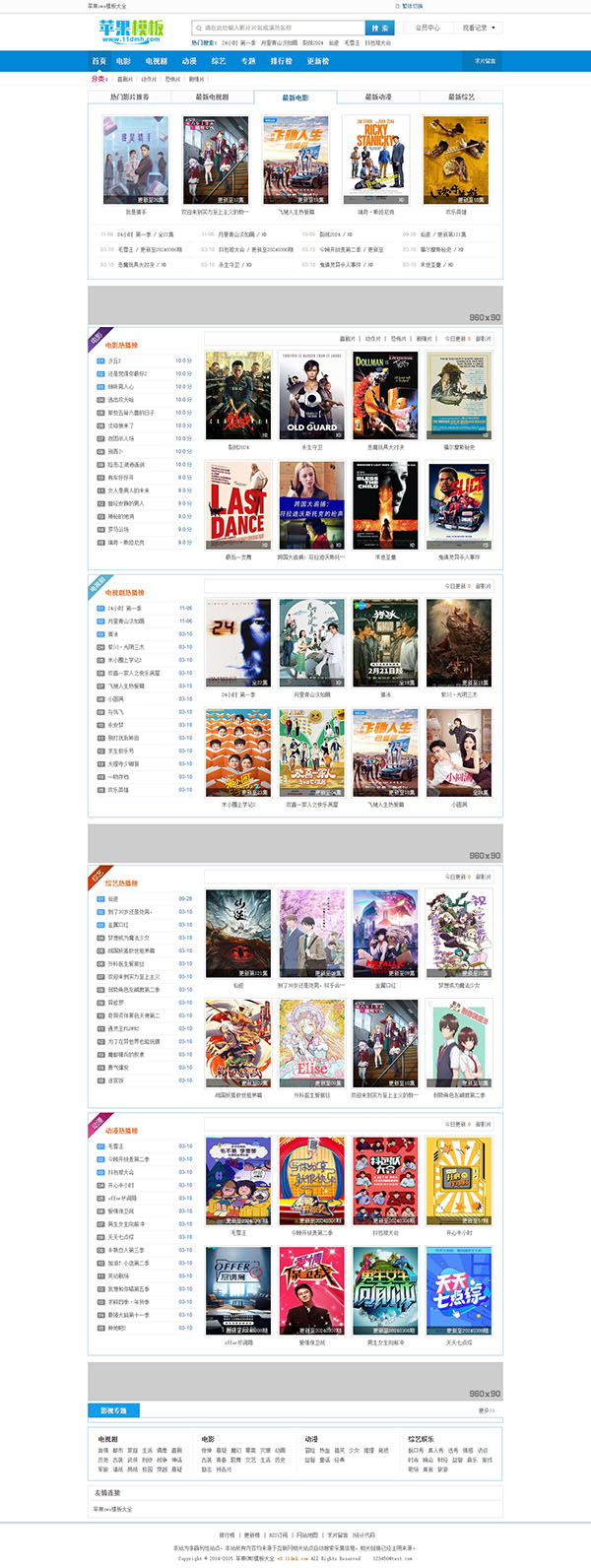 蓝色大气影视网站pc/wap双端6号模板下载 -苹果cms8模板免费下载